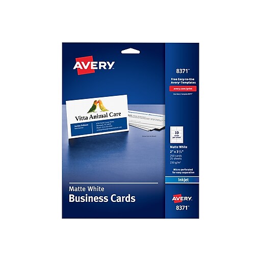 Avery inkjet business cards, 3.5w x 2l, matte white 250/pack (8371) 4.2 (126) matte white business cards are printable on both sides. Avery ® clean edge> business cards. Our business card template gallery is the perfect place to find a design template that matches your style. 86 list list price $85.29 $ 85. Now it's time for typing your information out.